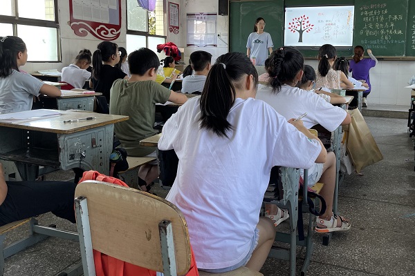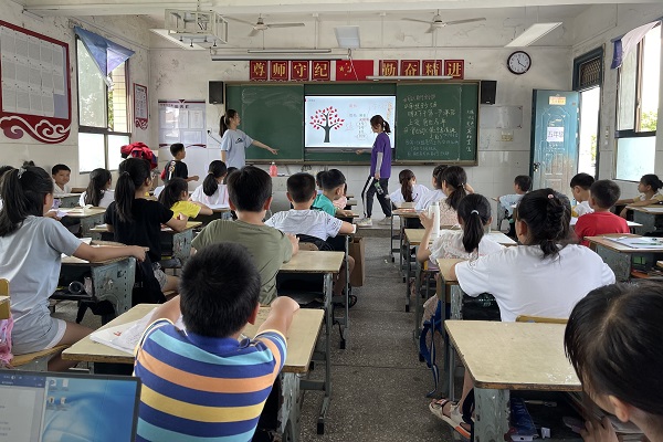 (通讯员 刘冰心 付潇靓 梁群琦)7月8日上午,数学与统计学院(以下简称“数统院”)团委赴长沙市望城区茶亭镇暑期社会实践团(以下简称“茶亭同行”)在茶亭小学五年级开展表演课程,该课程的老师为实践团队调研组组长沈诗淇和生活组组长李嘉琪。