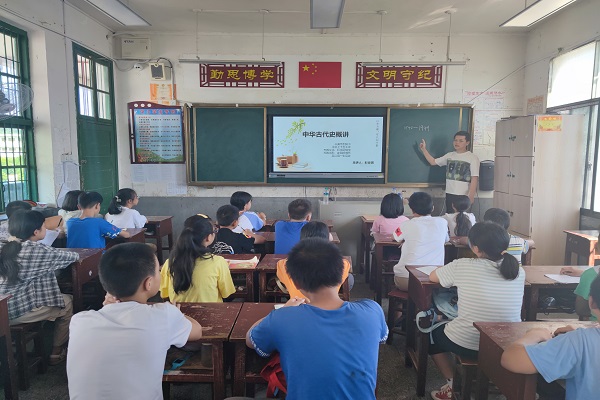 (通讯员 曹婧奕 黄思颖)7月8日上午,湖南师范大学数学与统计学院(以下简称“数统院”)学生社团管理服务中心赴邵阳城步苗族自治县暑期社会实践团(以下简称“师闪志风”)成员彭俊祺于西岩镇初级中学初一年级教室开办历史课程。