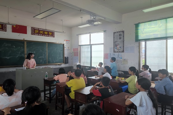 (通讯员 黄思颖 曹婧奕)7月9日下午,湖南师范大学数学与统计学院(以下简称“数统院”)学生社团管理服务中心赴邵阳市城步苗族自治县暑期社会实践团(以下简称“师闪志风”)成员胡诗琦于西岩镇初级中学初一年级教室开办科学课程。