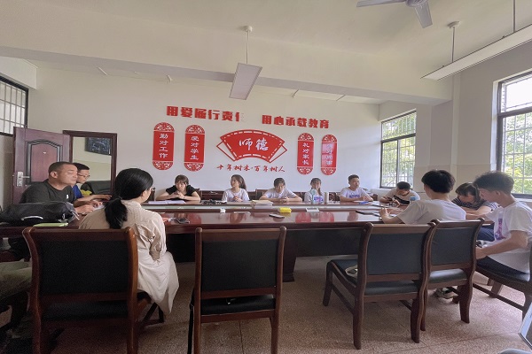 (通讯员 胡琼燕 李惟一 杜涛)7月10日下午,湖南师范大学数学与统计学院(以下简称为“数统院”)赴长沙市望城区白箬中学暑假实践团(以下简称为“爱在白箬”)召开第二次工作会议。此次出席会议人员有白箬中学行政组、“爱在白箬”队长团及正副班主任。
