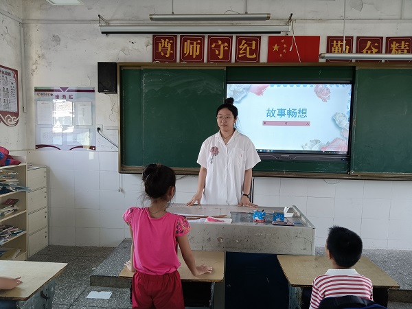 (通讯员 刘海林 付潇靓 梁群琦)7月11日上午,湖南师范大学数学与统计学院(以下简称“数统院”)团委赴长沙市望城区茶亭镇茶亭小学暑期社会实践团(以下简称“茶亭同行”)正式开设“故事畅想”课程,授课老师为素拓组组长姜可儿。