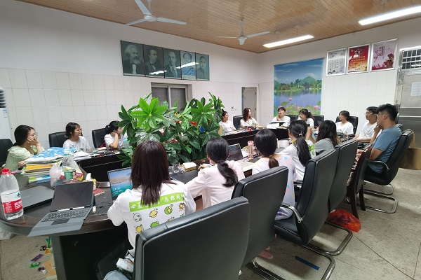 (通讯员 谢梦瑶 付潇靓 梁群琦)湖南师范大学数学与统计学院(以下简称“数统院”)团委赴长沙市望城区茶亭镇暑期社会实践团(以下简称“茶亭同行”)每日晚在茶亭小学总会议室召开每日例会,会议由“茶亭同行”团队队长梁群琦主持,全体队员参与此次会议。