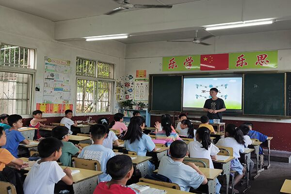 (通讯员 向宇 苏拉)7月13日上午,湖南师范大学数学与统计学院(以下简称“数统院”)赴岳阳市平江县暑期社会实践团(以下简称“幕阜行旅”)成员陈兴宇、袁雨欣、陈国瑜和向宇于余坪镇余坪中心小学学生教室开办语文课程。