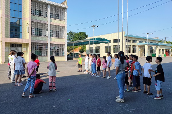 (通讯员 谢梦瑶 付潇靓 梁群琦)为做好赛前筹备工作,7月14日上午,湖南师范大学数学与统计学院团委赴长沙市望城区茶亭镇暑期社会实践团在教学楼前坪开展暑期夏令营趣味运动会赛前训练,积极备战。