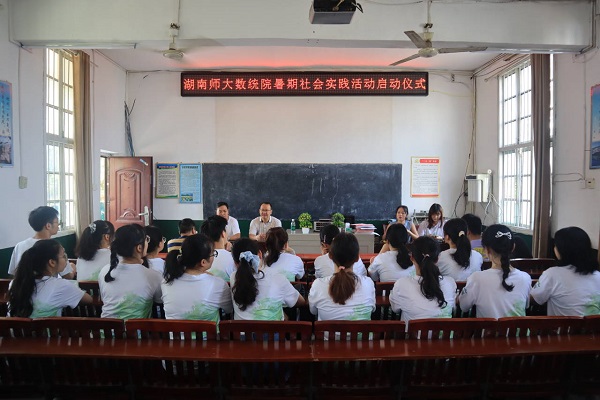 (通讯员 钟思颖 阮柳浈 曾皓楠)7月13日上午,湖南师范大学数学与统计学院(以下简称“数统院”)青年传媒中心赴邵阳市绥宁县暑期社会实践团(以下简称“实践团”)举行三下乡暑期社会实践活动启动仪式。黄土矿镇党委书记匡继辉、黄土矿镇学校校长向育军出席启动仪式并发表讲话。2020级辅导员肖惠卿作为指导老师参加了此次启动仪式。会议由黄土矿镇分管乡村振兴副书记杨媛主持。