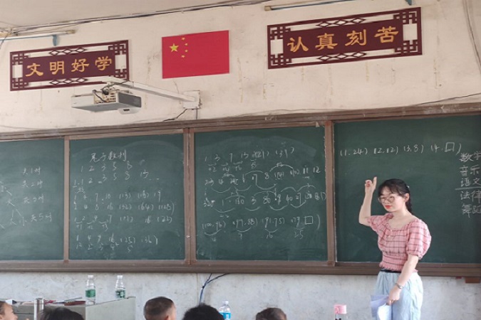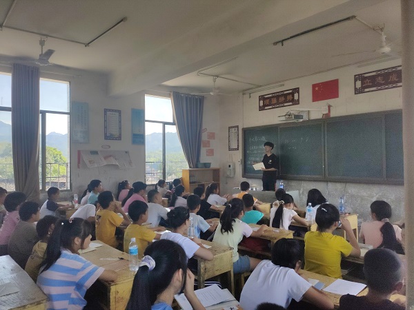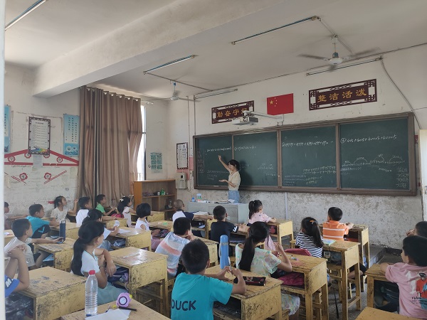 (通讯员 凡志芳 曾皓楠)7月13日上午,湖南师范大学数学与统计学院(以下简称“数统院”)青年传媒中心赴邵阳市绥宁县暑期社会实践团(以下简称“实践团”)成员来媛、冯胜超和凡志芳于黄土矿镇小学教室开办数学课程。