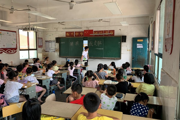 (通讯员 周真丞 付潇靓 梁群琦)7月14日晚上,湖南师范大学数学与统计学院(以下简称“数统院”)团委赴长沙市望城区茶亭镇暑期社会实践团(以下简称“茶亭同行”)在茶亭小学四年级开办了猜猜我是谁趣味课程。此次课程由“茶亭同行”队长梁群琦担任主讲人。