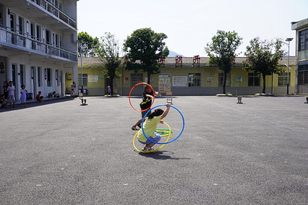 此次障碍赛跑道长一百米,参赛选手需要穿过五个呼啦圈,并使用筷子夹起乒乓球,运球冲刺最后二十米。选手到达终点后,需要完成踢毽子任务。茶亭同行队员周真丞、李玟燕担任比赛裁判,组织各年级分批次进行比赛,并根据参赛选手的用时长短评选出优秀运动员,最后为他们颁发奖状和礼品。考虑到参赛选手的年龄差异,裁判组对各年级障碍呼啦圈的个数进行了适当调整,以保证此次比赛的公平性。