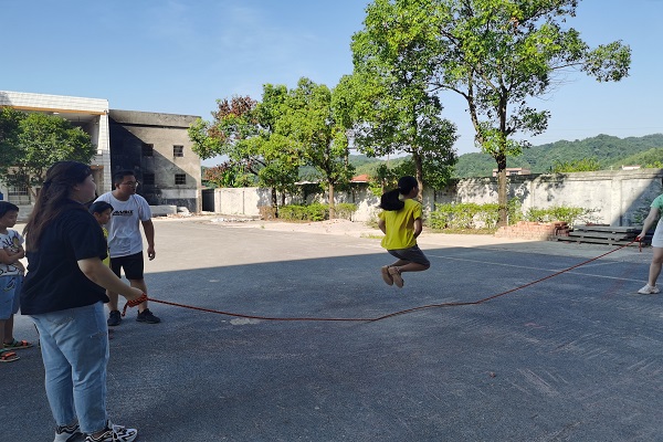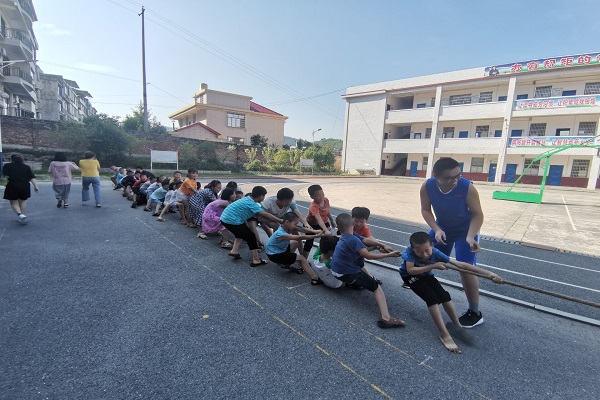 此次活动以游戏的形式进行,主要内容有拔河、跳大绳和丢沙包。老师维持班级秩序,学生积极参与到游戏中。所有活动完成后,老师们组织学生回教室休息,防止出现暴晒中暑的情况。