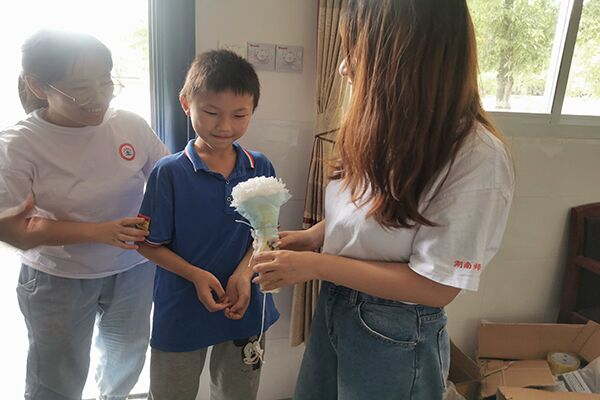 (通讯员 周鸿渝 苏拉 向宇) 7月15日,湖南师范大学数学与统计学院赴岳阳市平江县暑期社会实践团(以下简称“幕阜行旅”)成员朱林华过生日,她收到了来自余坪中心小学同学们认真准备的小礼物和生日祝福,“幕阜行旅”队成员与学生一起为她庆祝生日。