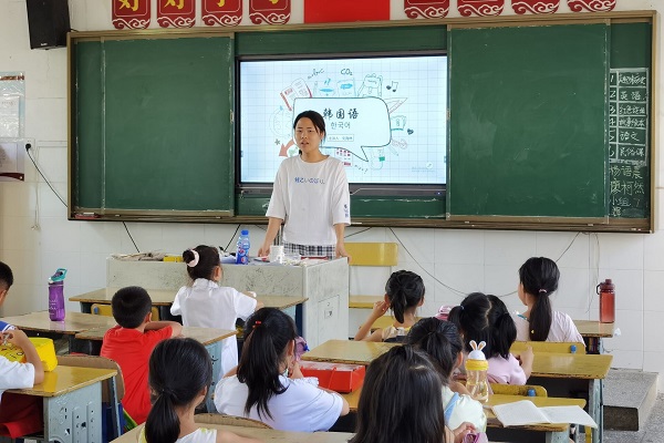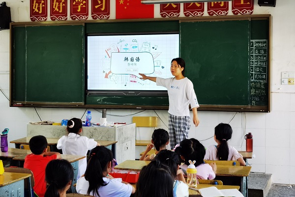 (通讯员 刘海林 付潇靓 梁群琦)7月15日上午,湖南师范大学数学与统计学院(以下简称“数统院”)团委赴长沙市望城区茶亭镇茶亭小学第八季暑期社会实践团开设韩语特色课程。活动的主要负责人为实践团成员刘海林。
