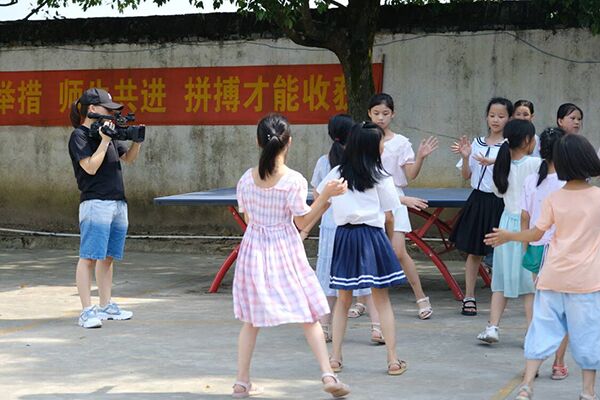 “幕阜行旅”队长向宇接受了平江电视台记者袁小妹的采访,她着重就团队成员组成情况、主科和拓展课程开设情况、成员参加此次活动的目的以及对此次活动的期望进行了说明。在此次采访过程中,袁小妹还对正在上体育课的学生进行了采访,了解了同学们对“幕阜行旅”队伍此次“三下乡”活动的看法、上课的感受以及对于老师的喜爱等。采访结束后,袁小妹对“幕阜行旅”成员表达了关心和鼓励。