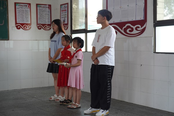 (通讯员 谢梦瑶 付潇靓 梁群琦)7月15日上午,为给茶亭小学的学生提供一个展示自己魅力的舞台,让学生知礼仪、学礼仪、用礼仪,传播礼仪之风,提供加强修养、提高能力的机会,湖南师范大学数学与统计学院(以下简称“数统院”)团委赴长沙市望城区茶亭镇暑期社会实践团(以下简称“茶亭同行”)进行校园礼仪队选拔。