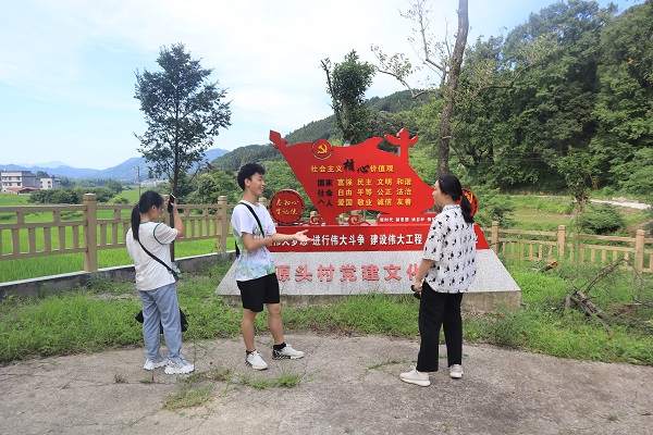 金融扶贫服务站的设置旨在对金融扶贫工作制度、台账登记制度、评级授信工作流程等基本信息进行公示,同时为村内受帮扶民众解答疑惑。在罗绩的带领下,实践团成员参观了黄土矿源头村新修的党建文化广场,了解了源头村医疗服务,公路修建、运动器材等基础设施建设情况。