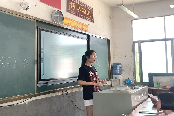 (通讯员 曹婧奕 黄思颖 陈铮)7月15日上午,湖南师范大学数学与统计学院(以下简称“数统院”)学生社团管理服务中心赴邵阳城步苗族自治县暑期社会实践团(以下简称“师闪志风”)成员李文婕于西岩初级中学初一年级教室开办名著导读课。