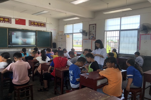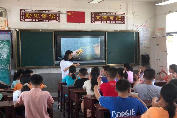(通讯员 曹婧奕 黄思颖 陈铮)7月16日上午,湖南师范大学数学与统计学院(以下简称“数统院”)学生社团管理服务中心赴邵阳城步苗族自治县暑期社会实践团(以下简称“师闪志风”)成员莫童茵于西岩初级中学初一年级教室开办手工课。