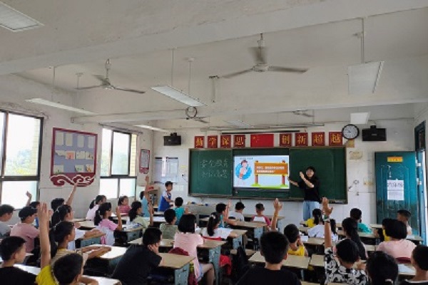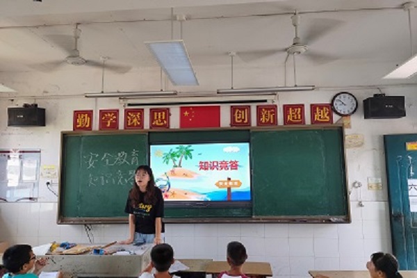 (通讯员 周真丞 付潇靓 梁群琦)7月16号下午,数学与统计学院(以下简称“数统院”)团委赴长沙市望城区茶亭镇暑期社会实践团(以下简称“茶亭同行”)在茶亭小学三年级开展了防溺水知识竞答,知识竞答由“茶亭同行”副队长李嘉琳举办,队长梁群琦指导记录。