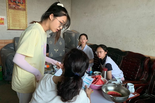 (通讯员 谢梦瑶 付潇靓 梁群琦)7月15日下午,湖南师范大学数学与统计学院(以下简称“数统院”)团委赴长沙市望城区茶亭镇暑期社会实践团(以下简称“茶亭同行”)二年级组进行第一次家访,受访学生为伍家繁,二年级副班主任吴紫莹和刘一欣、实践队队员刘琦、宋宝恩和沈诗淇出访。