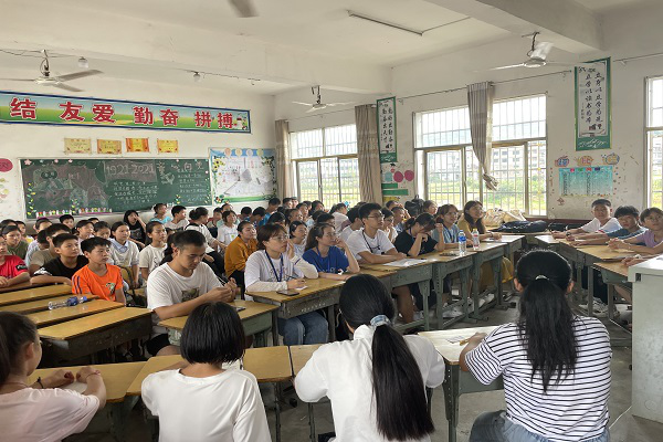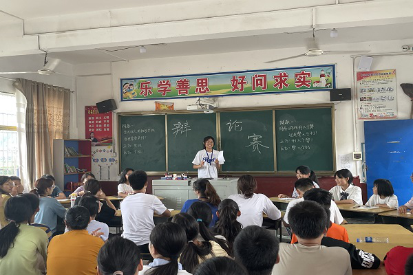 (通讯员 符祎宸 赵思琪 姚孟文)7月18日上午,数学与统计学院(以下简称“数统院”)党建工作委员会赴娄底市双峰县石牛乡桥亭中学暑期社会实践团(以下简称“师翼启梦”)在桥亭中学开展辩论赛,此次辩论赛进行两轮,主题分别为“当代社会,男性与女性谁更需要关怀”和“网络游戏是利大于弊还是弊大于利”,正反方分别为桥亭中学四班队伍和五班队伍。此次辩论会主持人为“师翼启梦”团队副队长张静怡,评审团为“师翼启梦”队员方向、康瑞雪、王珍琦、谭琴、马辰承、贺阳驰、罗灿灿。