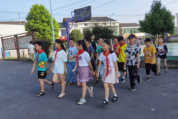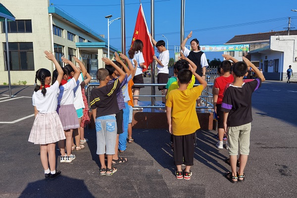 (通讯员 周真丞 付潇靓 梁群琦)7月19号上午,湖南师范大学数学与统计学院团委赴长沙市望城区茶亭镇暑期社会实践团(以下简称“茶亭同行”)在茶亭小学训练国旗护卫队,茶亭同行素拓组组长姜可儿为国旗护卫队训练负责任人。