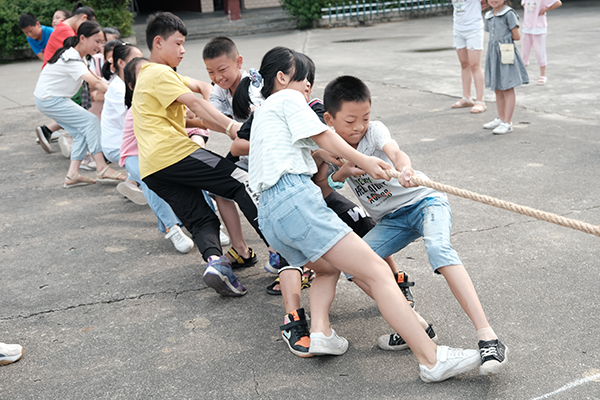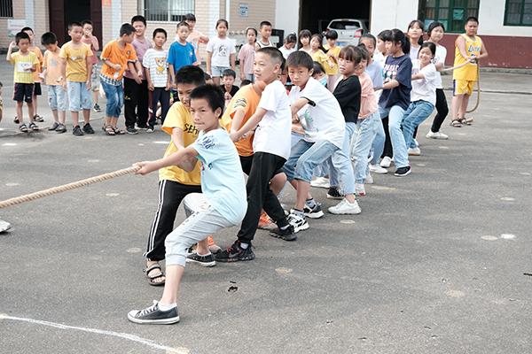 (通讯员 童心怡 苏拉 向宇)7月18日上午,为丰富校园文化生活,增强班级凝聚力,提高学生团队合作和坚韧不拔的精神,湖南师范大学数学与统计学院(以下简称“数统院”)赴岳阳市平江县暑期社会实践团(以下简称“幕阜行旅”)在余坪中心小学操场举行拔河比赛。各班同学踊跃报名,现场十分活跃。