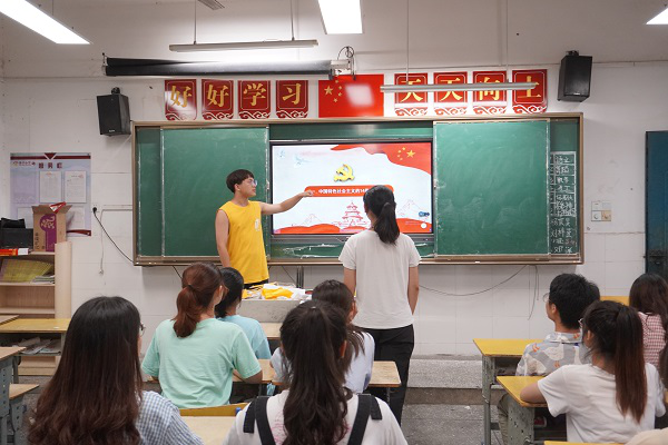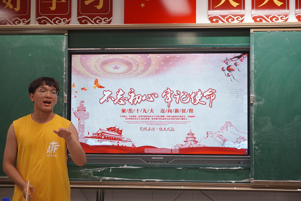 (通讯员 姚程 付潇靓 梁群琦)7月19日晚,湖南师范大学数学与统计学院团委赴长沙市望城区茶亭镇暑期社会实践团(以下简称“茶亭同行”)在茶亭小学会议室组织全体队员开展主题为“不忘初心牢记使命”的学习党史活动,“茶亭同行”队长梁群琦担任此次活动主讲人。