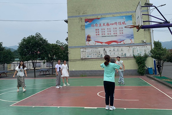 在暑期社会实践活动即将结束之际,队长梁群琦和副队长李嘉琳考虑到队员们在十几天的支教生活后,身体和心理处于双重疲惫状态,现组织茶亭同行队员在19日下午开展素拓活动休闲娱乐,调剂队员们身体和心理,释放压力。此次素拓活动不仅安排了“猜猜我是谁”“两人三足”等比赛,还为队员准备羽毛球、毽子、乒乓球和篮球等运动器材。队员们可根据爱好自由选择活动项目。