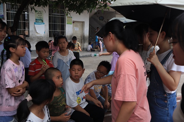 (通讯员 钟思颖 阮柳浈 曾皓楠)7月19日下午,为实现寓教于乐,打造互动式课堂,湖南师范大学数学与统计学院(以下简称“数统院”)青年传媒中心赴邵阳市绥宁县暑期社会实践团(以下简称“实践团”)于黄土矿镇学校操场举办了九九乘法表淘汰赛。实践团成员旷颖担任此次赛程总裁判,曾皓楠和钟思颖担任比赛口令员,杨可欣和江沁羽担任比赛记录员。