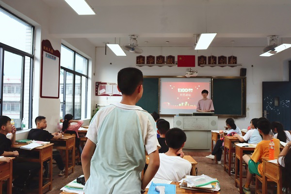 活动从革命历史、革命事迹、革命圣地、革命成果四个方面介绍百年党史。在革命历史方面,曹传超讲述党的历史上经历过的坎坷岁月,如国民党右派叛变革命,王明左倾错误等。在革命事迹方面,他先后介绍了李大钊、杨靖宇等人的光辉事迹。在革命圣地方面,曹传超介绍了瑞金、遵义、井冈山等红色遗址。在革命成果方面,曹传超讲解了新中国独立的历程、党的百年征途。初一A班同学们认真听讲,激动不已。在活动的尾声,曹传超强调少年责任四个字,提出对同学勤奋学习,积极承担社会责任以报效祖国的期望。