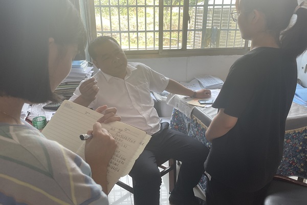 此次调研的主题是“防溺水安全意识与相关政策的落实”。调研组组长谭琴向校领导就防溺水工作进行采访,采访内容主要为学校收到的政府在防溺水工作方面下达的要求、与村委会如何配合落实防溺水安全工作、学校为此做的相关工作及其反响、落实的过程中遇到的难题、校领导对于落实防溺水工作的建议以及当前防溺水工作成重点关注问题的原因。校领导对此进行了详细解答,武思扬进行谈话记录,姚孟文和罗灿灿对谈话进行录音,确保把握住此次调研的所有有效信息。