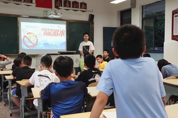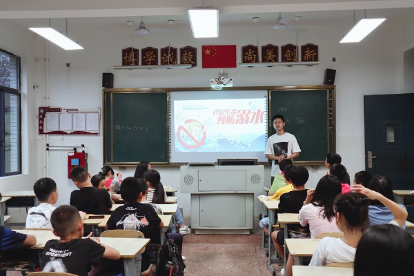(通讯员 胡琼燕 李惟一)7月23日,为加强学生的安全意识,确保学生的生命安全,湖南师范大学数学与统计学院(以下简称为“数统院”)赴长沙市望城区白箬中学暑假实践团(以下简称为“爱在白箬”)开展防溺水安全课程。此次课程由邓元园老师主讲,初二A班全体学生参加。