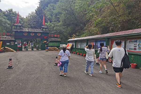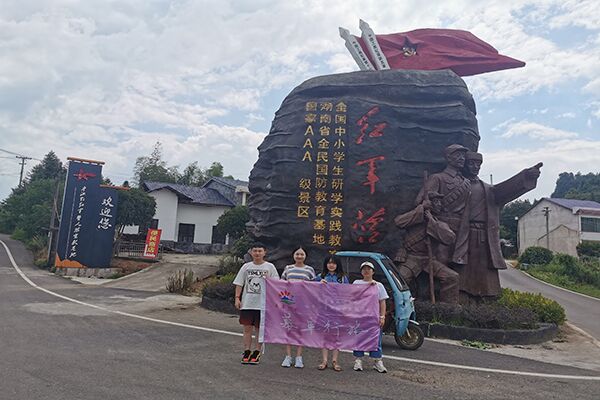 “幕阜行旅”队员在平江县汽车站集合出发,乘车途经1.5小时车程来到平江县长寿镇仙姑岩红军营进行学习调研工作。天气炎热,但无法消退队员们“重走红军路”的坚定信念,队员们在“红军哨卡”、“红军指挥所”、“红军大舞台”、“军需库”、“红军井”、“藏军洞”等遗迹进行参观学习。“幕阜行旅”成员了解到,平江是中国革命的发祥地、中国工农红军的摇篮之一,曾发生过平江起义等重大历史事件,是中国四大将军县之一,从这里先后走出了64位共和国将军,长寿镇有18位。1928年彭德怀发动了平江起义,创建了中国工农红军第五军,随后率部奔赴井冈山。在途经长寿、龙门时,与敌人浴血奋战,突出重围。一部分伤员便转移到仙姑岩。仙姑岩属丹霞地貌,山高壑深,下为平地,自然山险形成屏障,为当年红军游击队伍提供了栖身之所。革命先辈方正平与吴钦民等曾以此地为据点,开展了长达三年之久的游击战争,至今依然保留了许多红军遗迹。