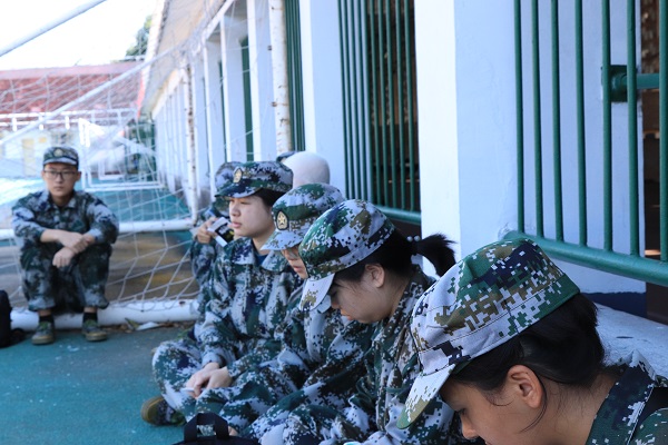 清晨的阳光洒在了一排排绿色的迷彩服上,每个年轻的面孔都透露着朝气蓬勃,昂扬向上的气势。某些新兵由于身体的原因无法参加整个军事训练过程。2021级伤病营张厚扬同学表示:“即使我是伤兵,也要秉持着锻志不锻人的军训精神不下火线,坚持来到田径场训练。”虽然伤兵营的训练不是太过繁重,但他们也负责着一定的后勤工作,以自己的方式坚守岗位,为军训服务,发挥榜样作用。