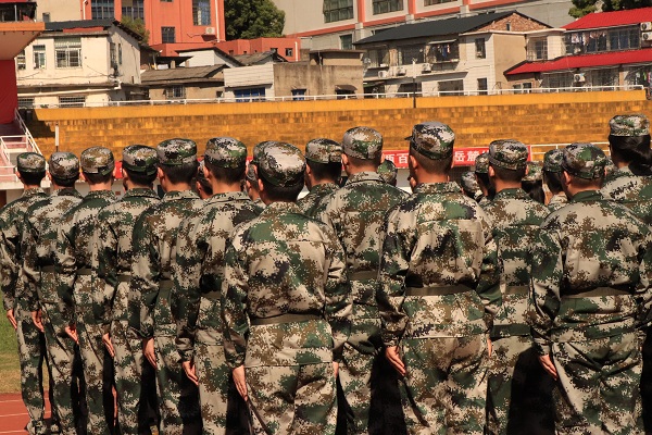 经过教官前两天的悉心指导,新生的军姿已经标准了很多,达到了教官满意的程度。部分新生由于持久站定,感到疲惫而开始松懈。“双手贴紧裤缝,抬头挺胸!”教官洪亮而有力的声音在训练场上响起,让原本松懈的新生立刻紧绷起来。教官一遍一遍地重复着动作要领:双脚分开约60°,脚跟并拢,双手紧贴裤缝,前后贴紧不留缝隙,两肩后张,收腹,下额微收,抬头挺胸,目视前方,让新生不断调整动作,军姿更趋标准化。