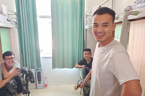 正值中午,2021级统计学新生完成一上午的训练后,来到寝室进行休整,为下午远足拉练作好充足的准备。与此同时,2021级统计学班导方向来到江边二号楼620,621寝室进行下寝检查。在与寝室成员的交谈中,方向提出了几点要求:门窗桌椅物品摆放整齐、室内不乱挂衣物、寝室清洁卫生、室内整齐美观空气清新。同时,方向也叮嘱新生们注意身体,空调温度不宜太低,熄灯时间不宜太晚,应保证充足的睡眠。620,621寝室成员表示,一定谨遵班导的悉心指导,在寝室内务上争取做到全院上游。