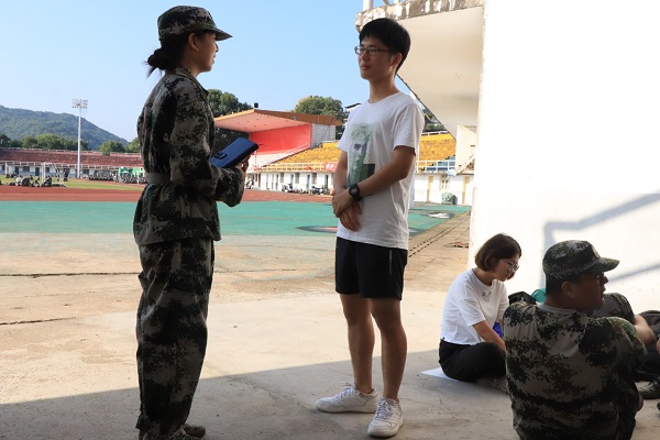 特刊记者就班导在军训期间值班的工作、成为一名班导的原因以及如何平衡学习和班导的工作进行了采访。冯立表示,值班的班导在每天开始军训前,要先去团办将音响拿到田径场交给教官,并准备好平常需要用到的药品。若有身体不舒服需要去校医院的新生,他们也需要负责将新生送至校医院。他表示,自己之前选择担任班导,是因为他喜欢结交朋友,希望认识一群可爱的学弟学妹们。对于学习和班导工作之间的平衡,他会在该学习的时候抓紧一切时间,然后利用课余时间将未完成的作业补上。