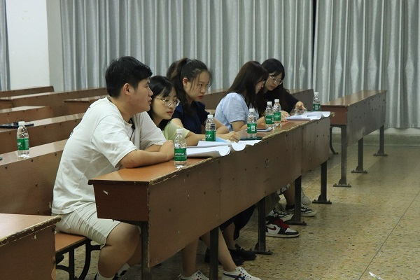 候选人做自我介绍后对“如何组织年级大会”“如何协调工作与时间的关系”“如何处理与辅导员和老师的关系”“如果成绩挂科怎么办”等问题进行回答,并回到候场处205教室写下《年级大会策划案》。