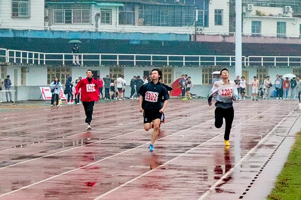 校运动会分为田赛和径赛,径赛的主要项目有100米、400米、4×400接力等。10月29日上午,在起跑的枪声中,男子100米比赛开始了。数统院2020级数学与应用数学何家华,刘佳文,向楚凡三位运动员参加预赛。男子100米考验的不仅仅是速度,更是在那一瞬间的爆发力。短短的100米,凝聚了一位运动员刻苦训练的成果。三位运动员在赛场上拼尽全力,努力展现出自己最好的一面。在各自的小组中,他们都取得了不错的成绩。