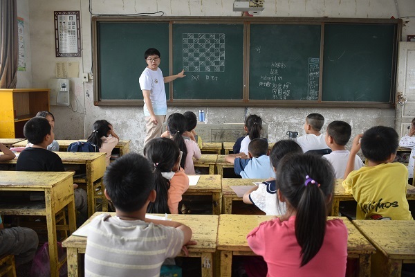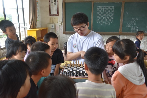 (通讯员 曹慧娟 王琪璇 曾皓楠)7月5日上午,“跃动青春,助力乡兴”——数学与统计学院“缘逢苗城”暑期社会实践团(以下简称“实践团”)于学校多媒体教室开展国际象棋特色课程。此次课程活动由实践团成员刘经凯负责。