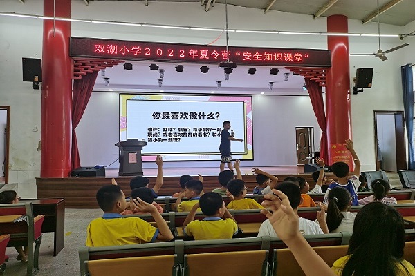(通讯员 黄萌宇 赵莫丽 谷婷)7月4日下午,数学与统计学院“师闪志风”暑期社会实践团于双湖小学大礼堂开展学生安全教育公开课。教学组成员纳通奕担任此次活动主讲人。