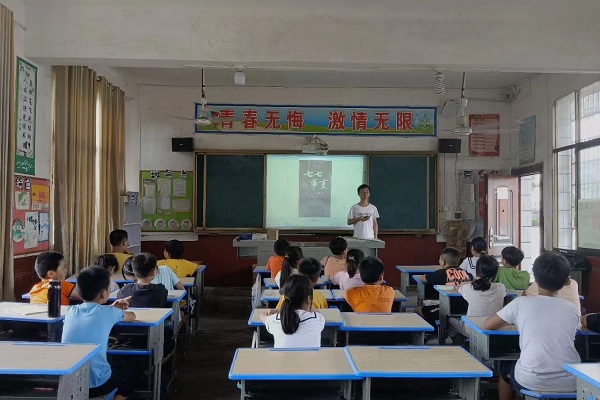 活动期间,师翼启梦通过校园广播和PPT展示的形式,给学生讲解七七事变的背景、经过以及意义,宣扬不屈的民族气节和伟大的爱国主义精神。其中包括双峰县革命烈士王振学及其家人的红色故事,以当地故事推动党史学习教育,宣传中国共产党在抗日战争中发挥的中流砥柱作用和建党百年取得的壮丽成果,坚定信念跟党走。活动最后,孩子们一个个地说道:“要记住历史,要记住英雄。”
