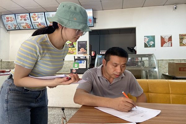 (通讯员 李芝仪 苏拉 姚语)7月8日下午,湖南师范大学数学与统计学院(以下简称“数统院”)“幕阜行旅”赴湖南省岳阳市平江县暑期社会实践团(以下简称“幕阜行旅”)以平江县三市镇爽口中学为中心,对周边商铺、住户展开了青年婚育观及行为调研。此次调研由调研组组长文婕妤组织,通过发放问卷来收集数据,为调研活动的进一步开展奠定基础。