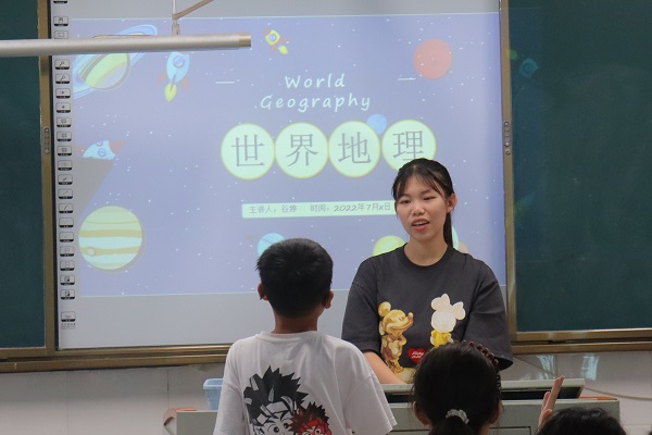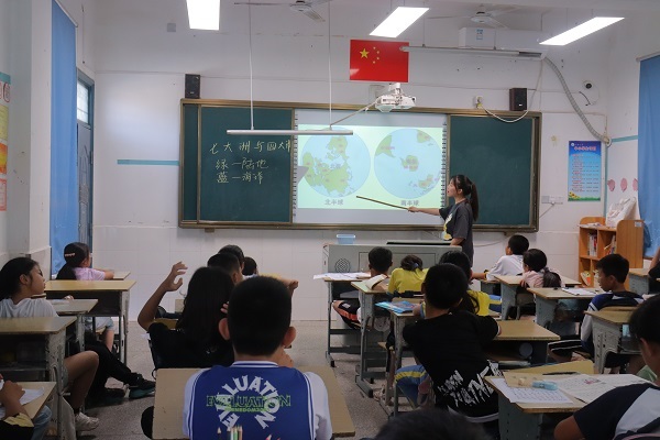 (通讯员 黄萌宇 谷婷)7月13日上午,数学与统计学院(以下简称“数统院”)“师闪志风”暑期社会实践团于双湖小学开展世界地理教学活动。此次教学活动围绕“七大洲与四大洋”展开,由实践团成员谷婷负责。