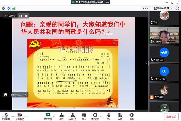 (通讯员 石卓 韦佳琪)7月14日上午,“以梦为马”——我校数学与统计学院赴长沙市暑期社会实践团(以下简称“实践团”)线上开展“从国歌到国家”课程,介绍国歌的创作背景。实践团成员刘婷担任主讲人。湖南省长沙市岳麓区含浦街道干子小学部分学生参与此次课程。