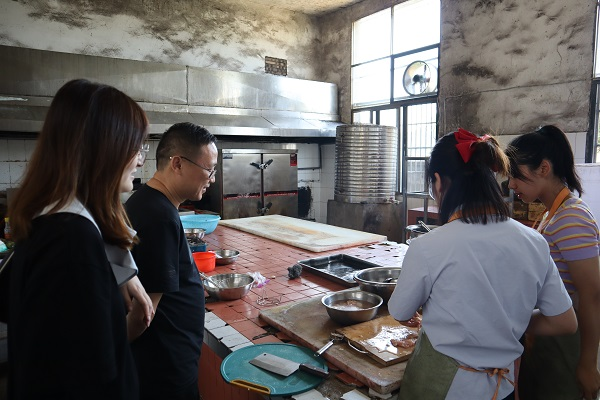 在实践团队长曾皓楠以及部分成员们的陪同下,涂榉耀先后参观黄土矿镇学校厨房、寝室、教学楼,并认真询问了食材安全、寝室保洁、教学氛围环境等问题。根据实践团成员的反馈,涂榉耀一一给出针对性的建议,并提醒全体实践团成员,在接下来的教学以及调研活动中,一定要注意保证自己与学生的安全。同时,他还强调了三下乡活动结束后的相关返程问题,希望实践团成员们能严格遵守学校的相关规章制度,安全回家。此外,涂榉耀代表学院为实践团送来了牛奶、面包等食品,表达了慰问与鼓励。