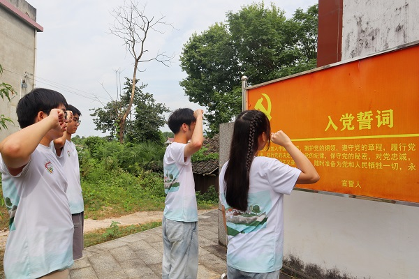 青山有幸埋忠骨,流芳百世浩气存。红军革命烈士纪念塔前,实践团成员认真阅读纪念塔底座上记载的文字,感受文字背后革命精神跨越时空带来的震撼。此外,实践团队长曾皓楠带领成员举起右拳,在纪念塔前庄严重温入党誓词,缅怀革命先烈。实践团成员的铮铮誓言,表达了听党话跟党走的坚定信心,发扬优良传统,继承好革命先辈矢志不渝的理想信念,更体现了对中国共产党的无限忠诚,忠实践行共产党人“不忘初心、牢记使命”的宗旨,树牢为民服务的理念决心。