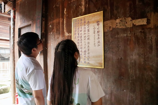 实践团成员在当地居民的带领下来到彭家大院。彭家大院是贺炳炎将军木锯截肢红色故事的发生地,实践团成员参观了手术室、休息室,实地感受共产党人顽强不屈、信念坚定的“硬骨头精神”。此外,实践团成员认真阅读屋内墙上历史文件的图片,红色遗址中的历史实物生动再现了革命先烈英勇奋战的光辉岁月,深深震撼了全体实践团成员的心灵。