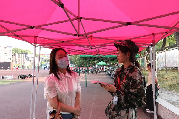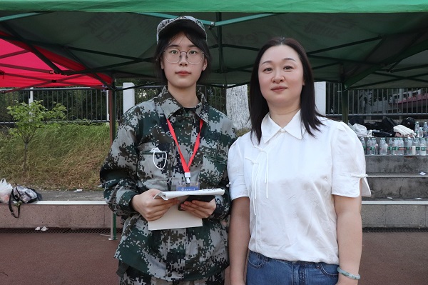 (通讯员 黄美绮 刘薇 曹慧娟)9月20日上午,数学与统计学院(以下简称“数统院”)军训特刊新闻组成员黄美绮于咸嘉湖校区田径场上对数统院2022级新生辅导员李俐老师进行采访。