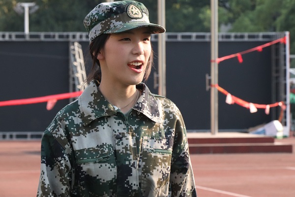 为鼓舞新生士气,顺利开展今日训练,军训开训前,曹豪纬带领新生面向国旗敬礼,并跟颂梁启超的《少年中国说》。数统院数学一班新生易胜男表示,她从词句“故今日之责任,不在他人,而全在我少年”中获得极大鼓舞,有了坚持完成后续训练的信心。