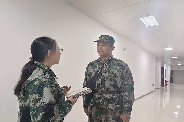 特刊记者就唐涛对军训生活的感受、才艺表演的看法以及来到伤兵连后的体验等方面展开专访。作为2022级数学三班的班长,唐涛表示,军训生活很累但很有趣,每天都能过得很充实。每当给同学们传达活动安排时,他总会有一种为他人服务的幸福感。